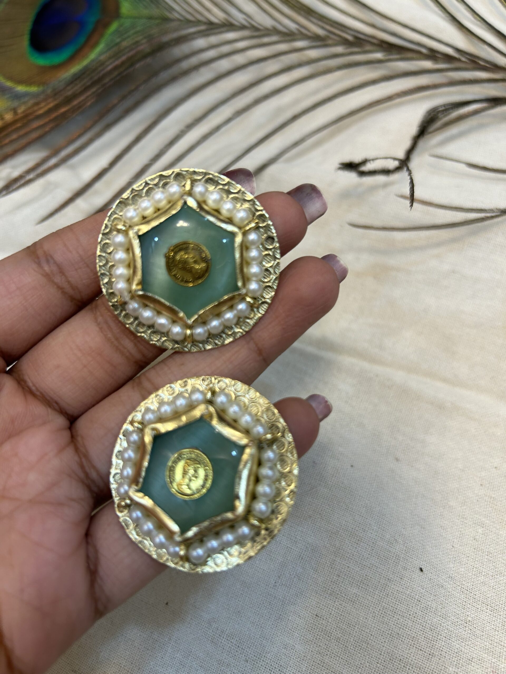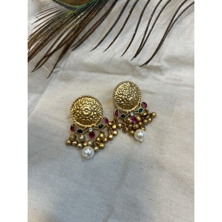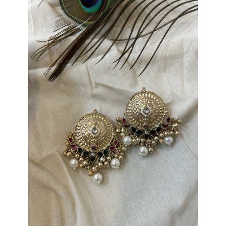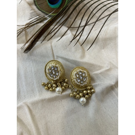 Feather light earrings that are your go to accessories for every ocassion. Hancrafted with brass and kundan motifs to give it a ethnic touch